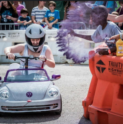 Race shot from race #3. I love the guys face in the background. I feel like this shot really shows how fun this is for racers and bystanders alike.